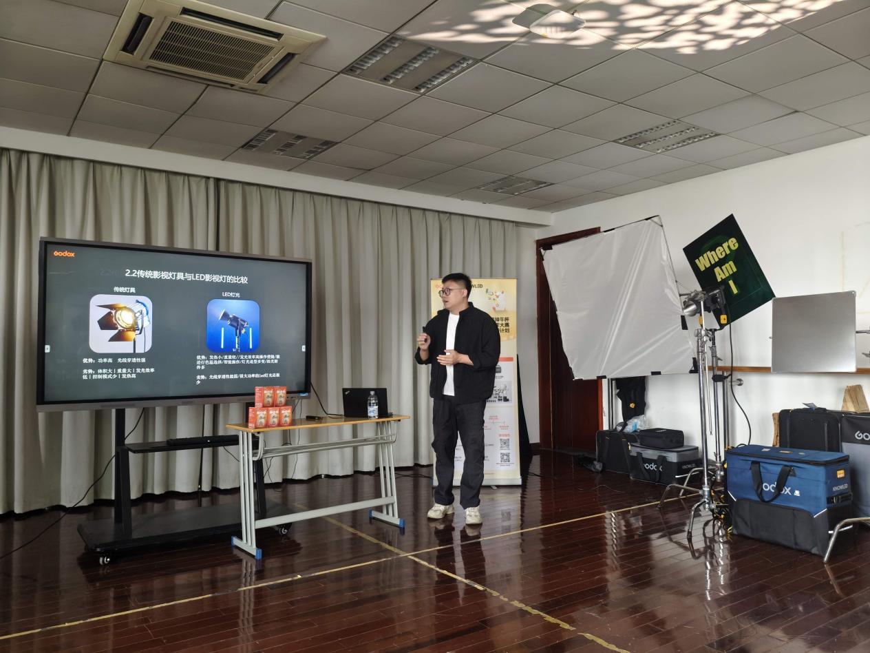 512教室顺利举行。作为"影视与新媒体行业前沿讲座"系列的第20期活动,本次讲座由深圳市神牛摄影器材有限公司专业摄影师陈嘉伟主讲。讲座围绕短视频创作中的布光技术与视觉叙事展开,通过系统讲解和实例分析,为在场师生提供了一次专业而实用的学习体验。