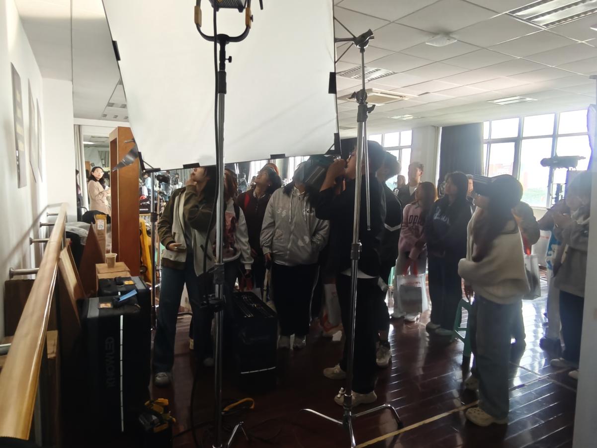 师生呈现了一堂融贯技术原理与艺术表达的光影实践课。从传统影视灯光的演进脉络,到新媒体语境下的光影语言革新,他的讲解让在场师生深刻领悟到:光线不仅是塑造画面的技术工具,更是承载情感、推动叙事的艺术灵魂,是影像创作中最具诗意的视觉表达载体。