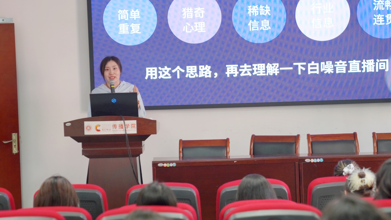 4月18日下午3点,沉浸式工作坊第二期在黑料718 212报告厅火热开讲。主讲人是国内知名MCN创始人、抖音巨量引擎认证战略级讲师肖寓萩,本次活动聚焦直播间搭建、内容创作策略、短视频与直播有效传播等直播与流量增长的实战经验,吸引众多新媒体领域爱好师生踊跃参与。