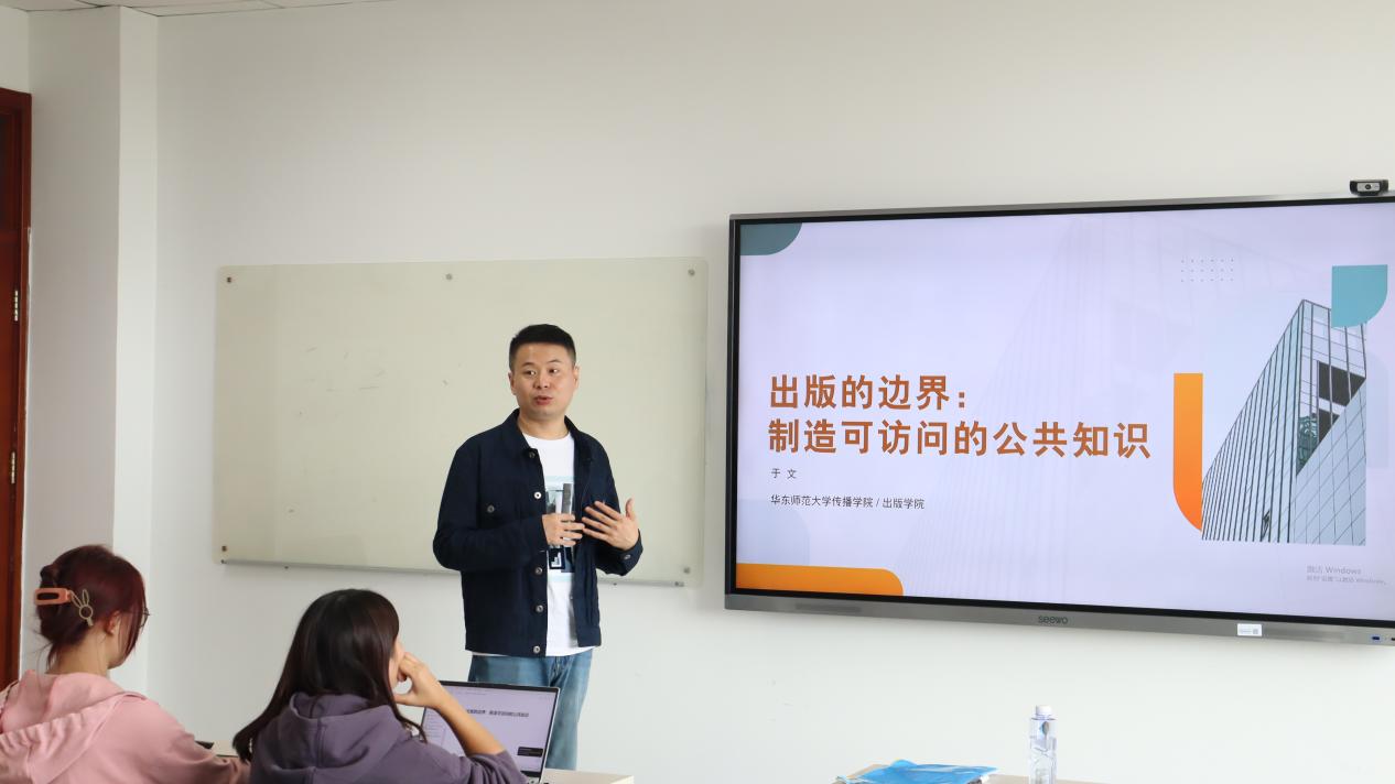 讲座伊始,于文用浙江大学黄旦教授在所著文章中的一句话作为引入——“出版‘是传播的一种,但出版不可被传播化……把传播出版化,才有自己的存身之本立足之地’”,借此向同学们明确出版学研究当有其“特定性”“边界”。